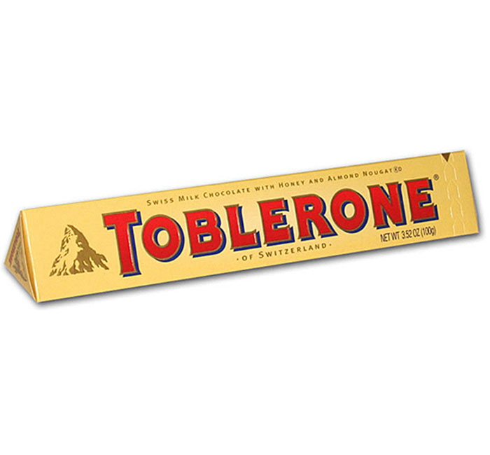 First created in 1908, Toblerone is the OG of nougat candy bars! Toblerone combines honey-almond nougat with Swiss milk chocolate in its iconic triangular shape that was inspired by the Matterhorn Mountain in the Swiss Alps.