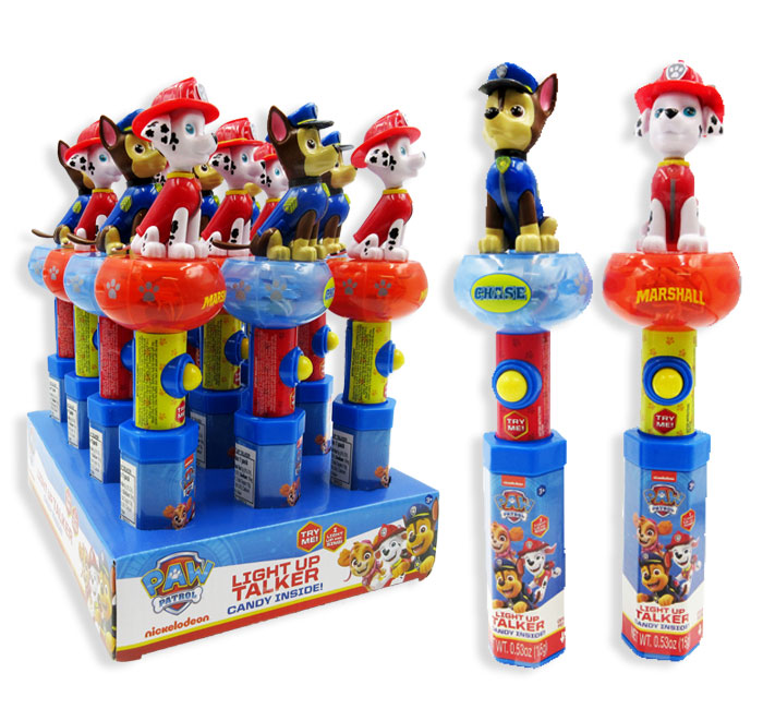 Candyrific makes light up talkers (pictured above) that play music and light up when you hit the button. These feature characters Chase and Marshall and are sure to be a mega hit with the kids coming into your store. We also have Paw Patrol PEZ dispensers and a Finders Keepers chocolate egg with a toy inside. Check out all of our fun Paw Patrol merchandise and party favors here.