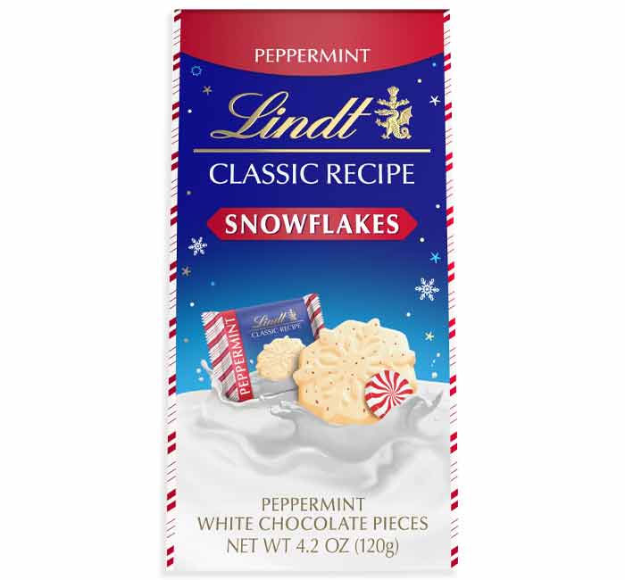 LINDT BAG CLASSIC WHITE PEPPERMINT SNOWFLAKE