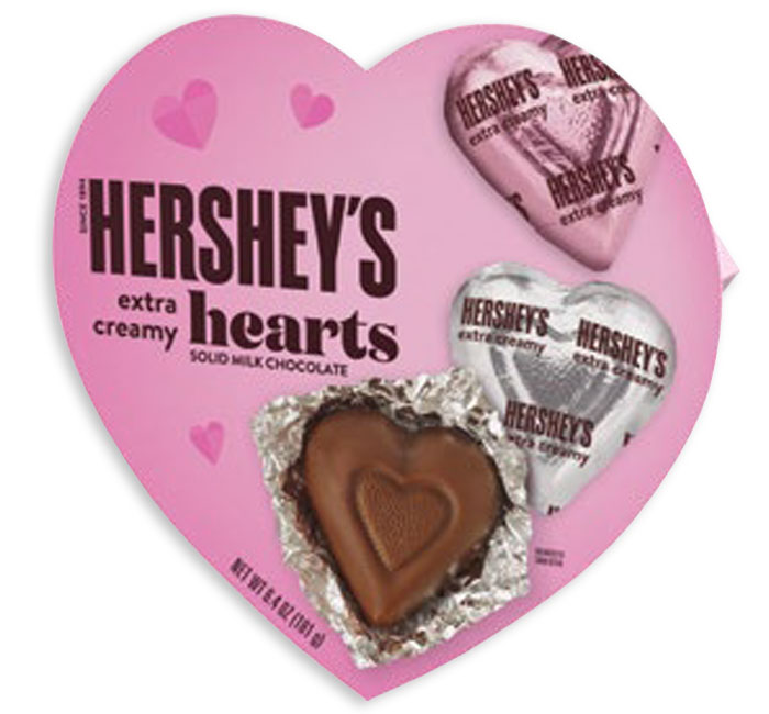 HERSHEYS EXTRA CREAMY MC HEARTS IN PINK HEART BOX