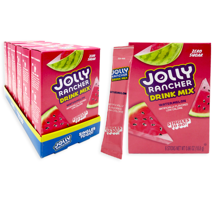 Jolly Rancher To Go Watermelon Drink Mix from Jel Sert delivers a bold, tangy watermelon flavor in a convenient, sugar-free powder stick perfect for on-the-go refreshment. This low-calorie, caffeine-free mix easily blends with water for a sweet, thirst-quenching drink thats ideal for any occasion.