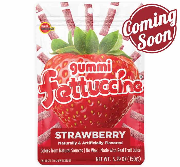 Made with real fruit juice, these adorable strawberry flavored Fettuccine Gummi strips are juicy, bouncy, and fruity! Each strip is sour-sanded for the perfect combination of sweet and sour.