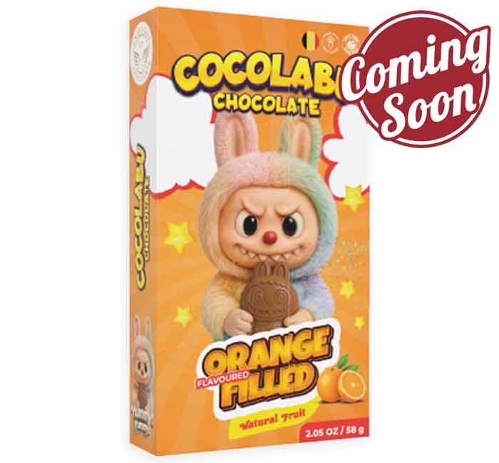 Sweet, citrusy, and full of character! The Cocolabu Orange Filled Chocolate Bar by Angelique Chocolate features adorable Labubu shapes made from smooth chocolate with a bright orange-filled center. Each bite blends creamy chocolate with a cheerful burst of citrus, creating a playful treat that is as fun to eat as it is to admire! AVAIL JUNE 2026