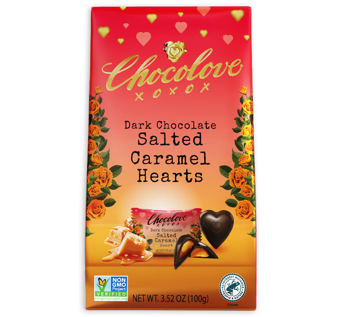 CHOCOLOVE DARK CHOCOLATE SALTED CARAMEL HEARTS BAG
