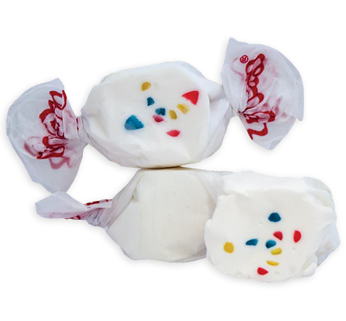 Taffy Town has been making candy for over 100 years and they have perfected their whipped process for making saltwater taffy ideal for bulk bins. Frosted cupcake taffy is a customer favorite. This yummy taffy tastes like a cupcake complete with sprinkles! 65 - 68 pieces per LB.