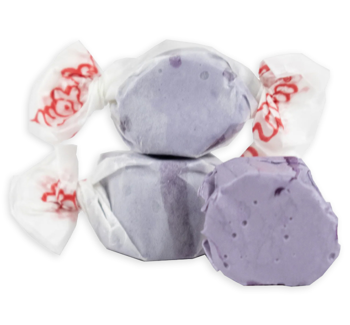 Taffy Town has been making candy for over 100 years and they have perfected their whipped process for making saltwater taffy. Grape Taffy is so true to life, it has a sweet, yet tart flavor. 65 - 68 pieces per LB. In bulk bag.