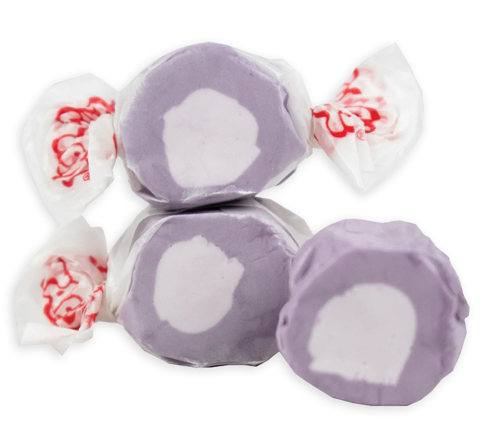 Taffy Town has been making candy for over 100 years and they have perfected their whipped process for making saltwater taffy. Huckleberry Taffy has a bold berry flavor and tastes like you picked it right off the vine. 65 - 68 pieces per LB. In bulk bag.