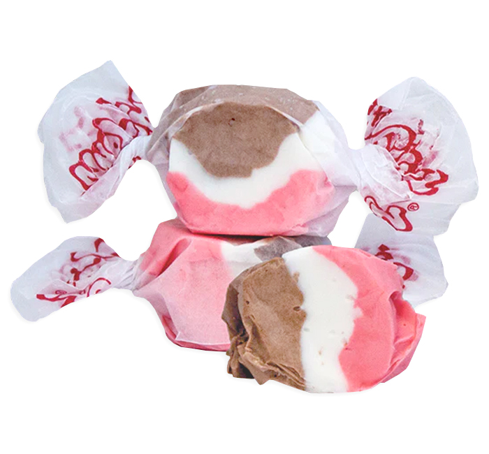 Taffy Town has been making candy for over 100 years and they have perfected their whipped process for making saltwater taffy. This Neapolitan tafffy combines the best of three favorite flavors with chocolate, strawberry, and vanilla. 65 - 68 pieces per LB. In a bulk bag.